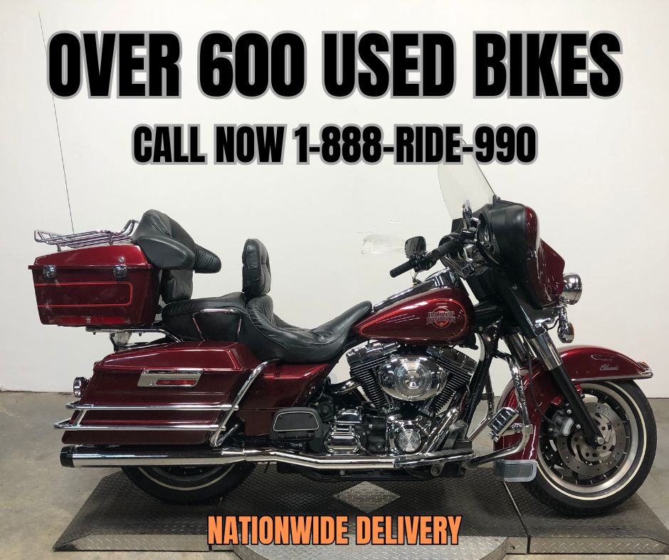 USED HARLEY ELECTRA GLIDE FOR SALE! CLEAN, CLEAN, CLEAN! THE BRIGHT RED PAINT SHINES LIKE NEW, AS DOES THE CHROME! INCLUDES $1,200 IN EXTRAS, PASSENGER BACKREST, HIGHWAY PEGS, AND THE DUAL RINEHART EXHAUST SOUNDS GREAT! THIS ONE IS A MUST-SEE! JUST SERVICED AT DEALERSHIP, INSPECTED, ALL FLUIDS CHANGED, RUNS STRONG, EVERYTHING WORKS, NEEDS NOTHING! THIS IS A GREAT BIKE FOR THE MONEY!