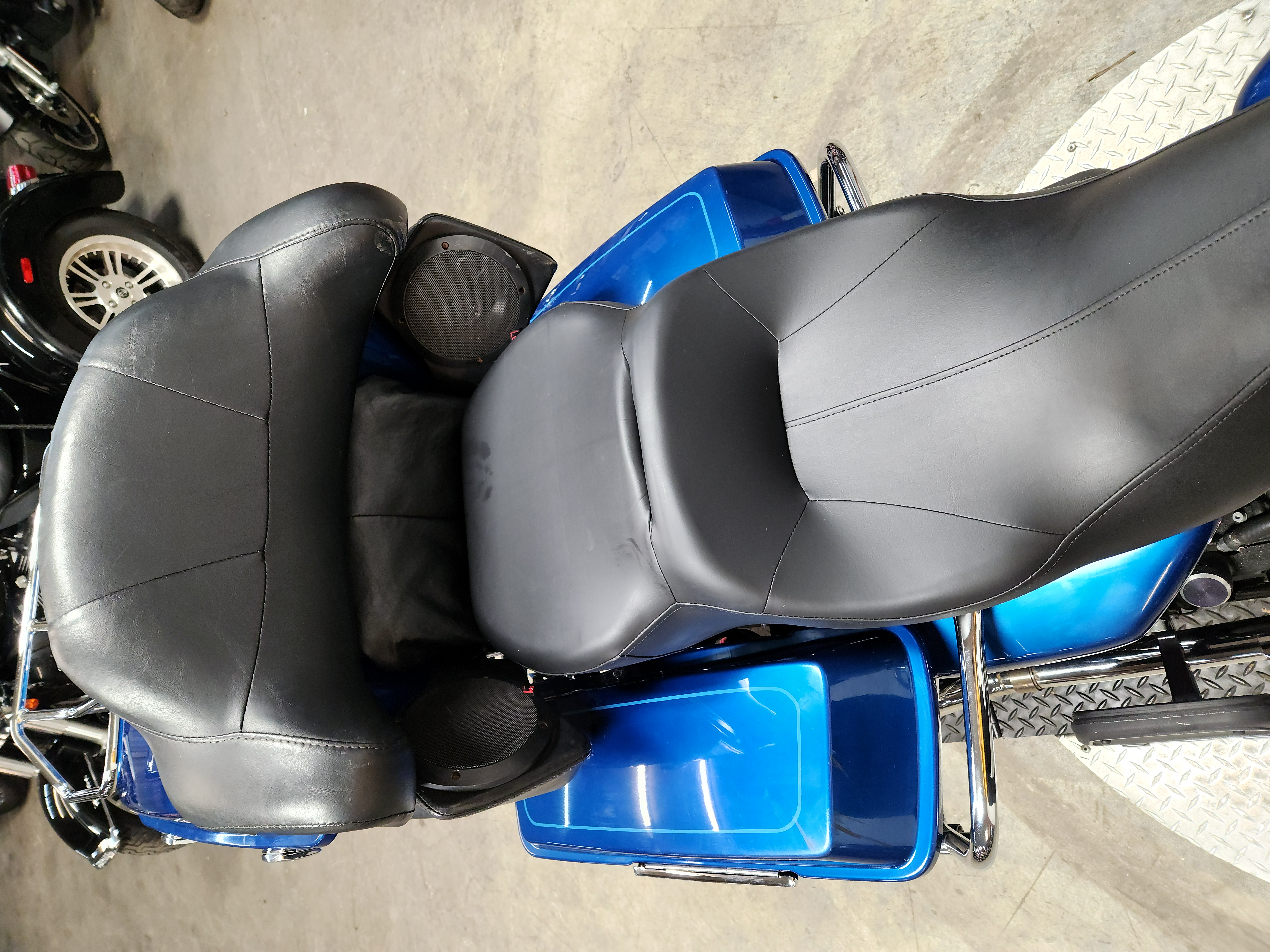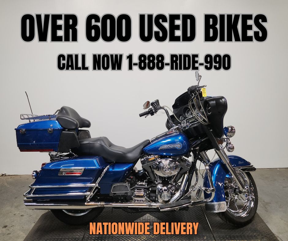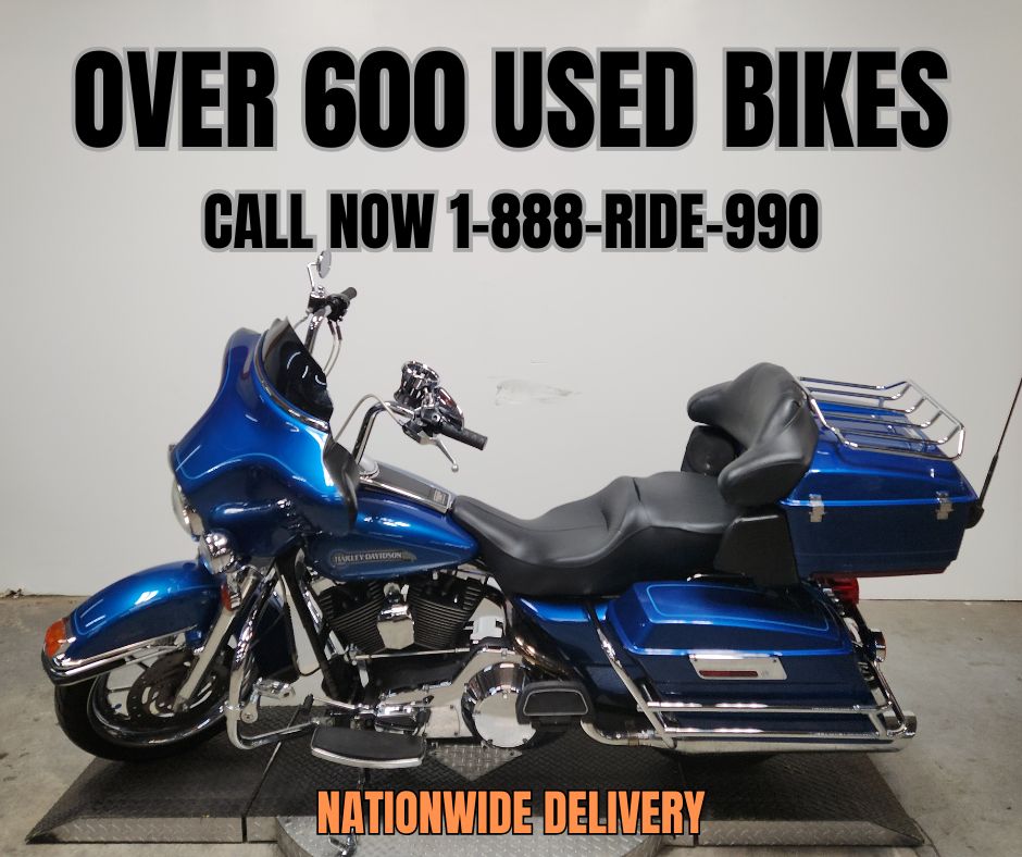 USED HARLEY ELECTRA GLIDE FOR SALE IN ELECTRIC BLUE WITH ONLY 32,229 MILES AND OVER $3,000 IN EXTRAS! THIS ONE IS A MUST-SEE! CHROME FRONT AND REAR WHEELS, CHROME FRONT END, BLACKOUT WINDSHIELD, JVC BLUETOOTH STEREO, 4 SPEAKERS, CUPHOLDER, HIGHWAY PEGS, AND THE DUAL VANCE AND HINES EXHAUST SOUNDS GREAT! JUST SERVICED AT DEALERSHIP, INSPECTED, ALL FLUIDS CHANGED, RUNS STRONG, EVERYTHING WORKS, NEEDS NOTHING! THIS IS ONE CLEAN, SHARP BIKE FOR THE MONEY! STAND OUT FROM THE CROWD!