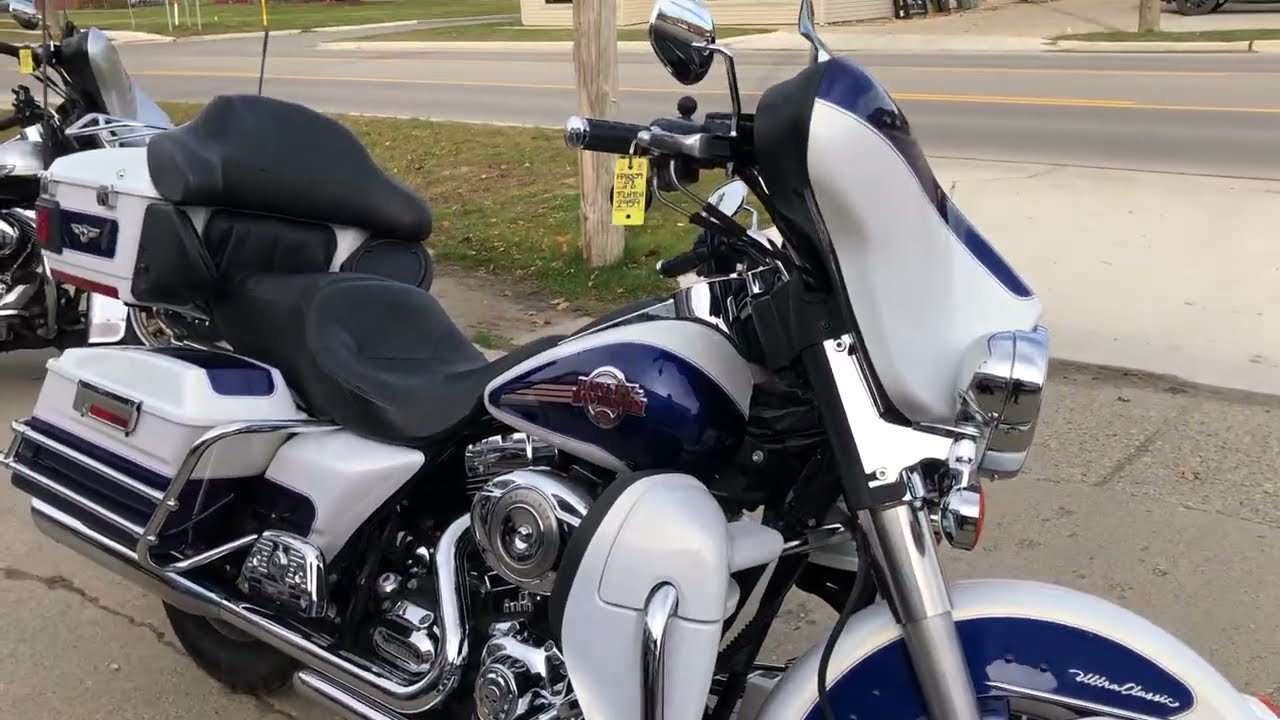 USED HARLEY DAVIDSON ULTRA CLASSIC FOR SALE WITH ONLY 27,056 MILES! CLEAN, CLEAN, CLEAN WITH PEARL WHITE PAINT AND OVER $1,500 IN EXTRAS! THIS IS ONE SHARP HARLEY! TINTED WINDSHIELD, WILLIE G ENGINE COVERS, WILLIE G LOWER CONTROLS, AND THE VANCE & HINES DUAL EXHAUST SOUNDS GREAT! JUST SERVICED AT DEALERSHIP, INSPECTED, ALL FLUIDS CHANGED, RUNS STRONG, EVERYTHING WORKS, NEEDS NOTHING! GREAT, LOW MILES HARLEY FOR THE MONEY!