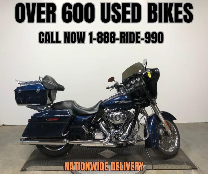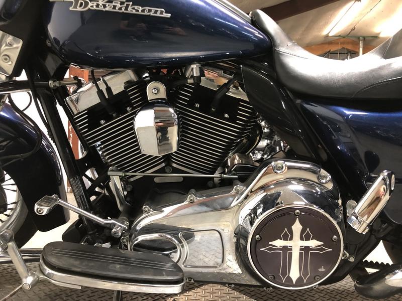 USED HARLEY STREET GLIDE FOR SALE WITH BIG BLUE PEARL PAINT AND ONLY 17,505 MILES! NICE, CLEAN HARLEY WITH OVER $1,500 IN EXTRAS, BLUETOOTH STEREO, TINTED WINDSCREEN, QUICK DETACHABLE TRUNK, AND THE SUPERTRAPP DUAL EXHAUST SOUNDS GREAT! RUNS STRONG, EVERYTHING WORKS, NEEDS NOTHING! BLUE BOOK IS $10,000, THIS LOW MILEAGE STREET GLIDE IS A DEAL!