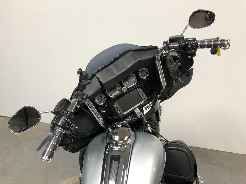USED HARLEY ULTRA LIMITED FOR SALE IN TWO TONE VIVID BLACK AND LIQUID SILVER FOR SALE WITH ONLY 27,054 MILES! CLEAN, CLEAN, CLEAN WITH OVER $2,000 IN EXTRAS! HANDLE BAR RISERS, PHONE HOLDER, LOW PROFILE WINDSCREEN, WINDSHEILD BAG, OVER SIZED L.E.D SCREEN, BLUETOOTH STEREO, NAVIGATION SYSTEM, SECURITY SYSTEM, CRUISE CONTROL, AND THE DUAL VANCE & HINES EXHAUST SOUNDS GREAT! JUST SERVICED AT THE DEALERSHIP, INSPECTED, ALL FLUIDS CHANGED, RUNS STRONG, EVERYTHING WORKS, NEEDS NOTHING! CERTIFIED AND WARRANTY AVAILABLE! SOLD NEW FOR $27,000, BLUE BOOK IS $13K. THIS ONE IS A DEAL!