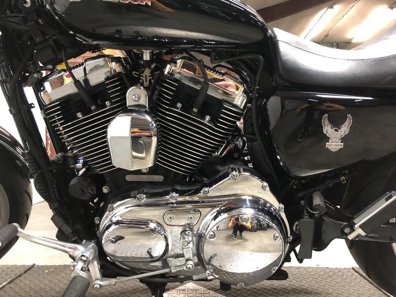 USED HARLEY SPORTSTER FOR SALE WITH ONLY 9,406 MILES AND STAGE 1 KIT. RUNS STRONG WITH SCREAMING EAGLE INTAKE AND THE VANCE & HINES DRAG EXHAUST SOUNDS GREAT! WINDSHIELD, BACKREST, AND TONS OF CHROME THAT'S OVER $2,000 IN EXTRAS! JUST SERVICED AT THE DEALERSHIP, INSPECTED, ALL FLUIDS CHANGED, EVERYTHING WORKS, NEEDS NOTHING! GREAT BIKE FOR THE MONEY!