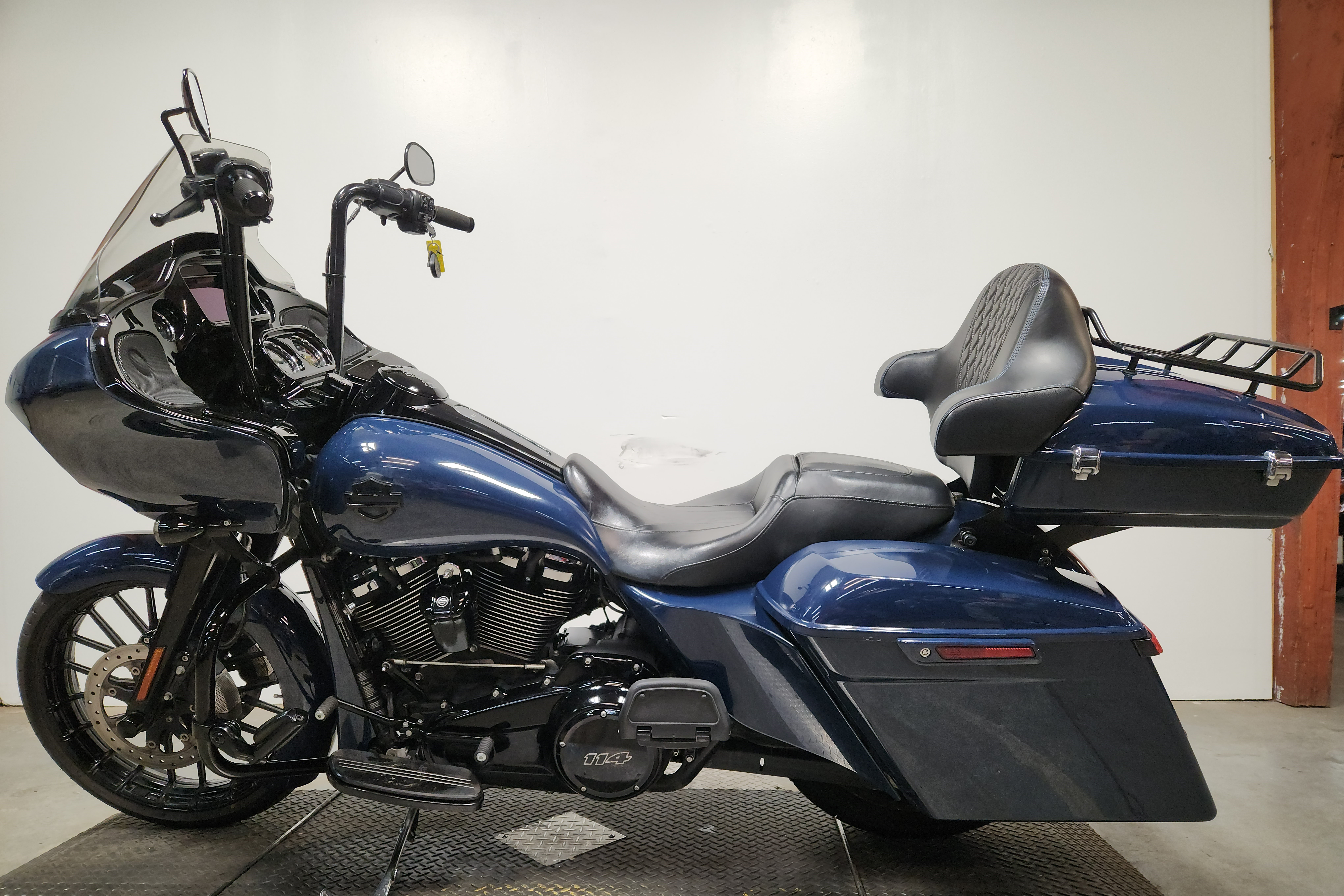 USED BIG WHEELED BAGGER FOR SALE IN HARD TO FIND COLOR "BILLIARD BLUE" WITH THE 114 CUBIC INCH MILWAUKEE 8 MOTOR AND OVER $6,000 IN EXTRAS! WOW, WOW, WOW! THIS ROAD GLIDE SPECIAL WILL TURN HEADS EVERYWHERE YOU GO! 21-INCH RC COMPONENTS FRONT WHEEL, EXTENDED GAS TANK, EXTENDED SIDE COVERS, EXTENDED REAR FENDER, EXTENDED SADDLEBAGS, LOW PROFILE TRUNK, OVERSIZED L.E.D SCREEN, BLUETOOTH STEREO, NAVIGATION SYSTEM, CRUISE CONTROL, SECURITY SYSTEM, STAGE 1 KIT WITH ARLEN NESS INTAKE, AND THE D&D 2-INTO-1 EXHAUST SOUNDS GREAT! STAND OUT FROM THE CROWD! JUST SERVICED AT DEALERSHIP, INSPECTED, ALL FLUIDS CHANGED, RUNS STRONG, EVERYTHING WORKS, NEEDS NOTHING! DON'T MISS THIS ONE!