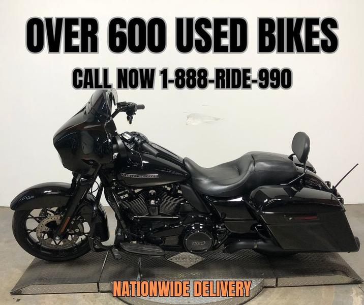 USED HARLEY STREET GLIDE SPECIAL FOR SALE IN HIGH GLOSS VIVID BLACK PAINT WITH BLACKOUT PACKAGE, BLACKOUT WHEELS, BLACKOUT CONTROLS, BLACKOUT RACK, AND BLACKING MOTOR. BRANSON VANCE & HINES EXHAUST, UPGRADED L.E.D. SCREEN WITH INFO / TACHOMETER SYSTEM, BLUE TOOTH STEREO, NAVIGATION SYSTEM, CRUISE CONTROL, SECURITY SYSTEM, AND MORE. MATCHING HARLEY HEAVY DUTY BAGS, STAGE 1 KIT, SCREAMIN’ EAGLE INTAKES, AND THE DUAL VANCE & HINES EXHAUST SOUNDS GREAT! THIS ONE IS DONE RIGHT! JUST SERVICED AT DEALERSHIP, INSPECTED, ALL FLUIDS CHANGED, THE 114 CUBIC INCH MILWAUKEE 8 MOTOR RUNS STRONG, EVERYTHING WORKS, NEEDS NOTHING! SOLD NEW FOR OVER $34,000! THIS ONE IS A DEAL!