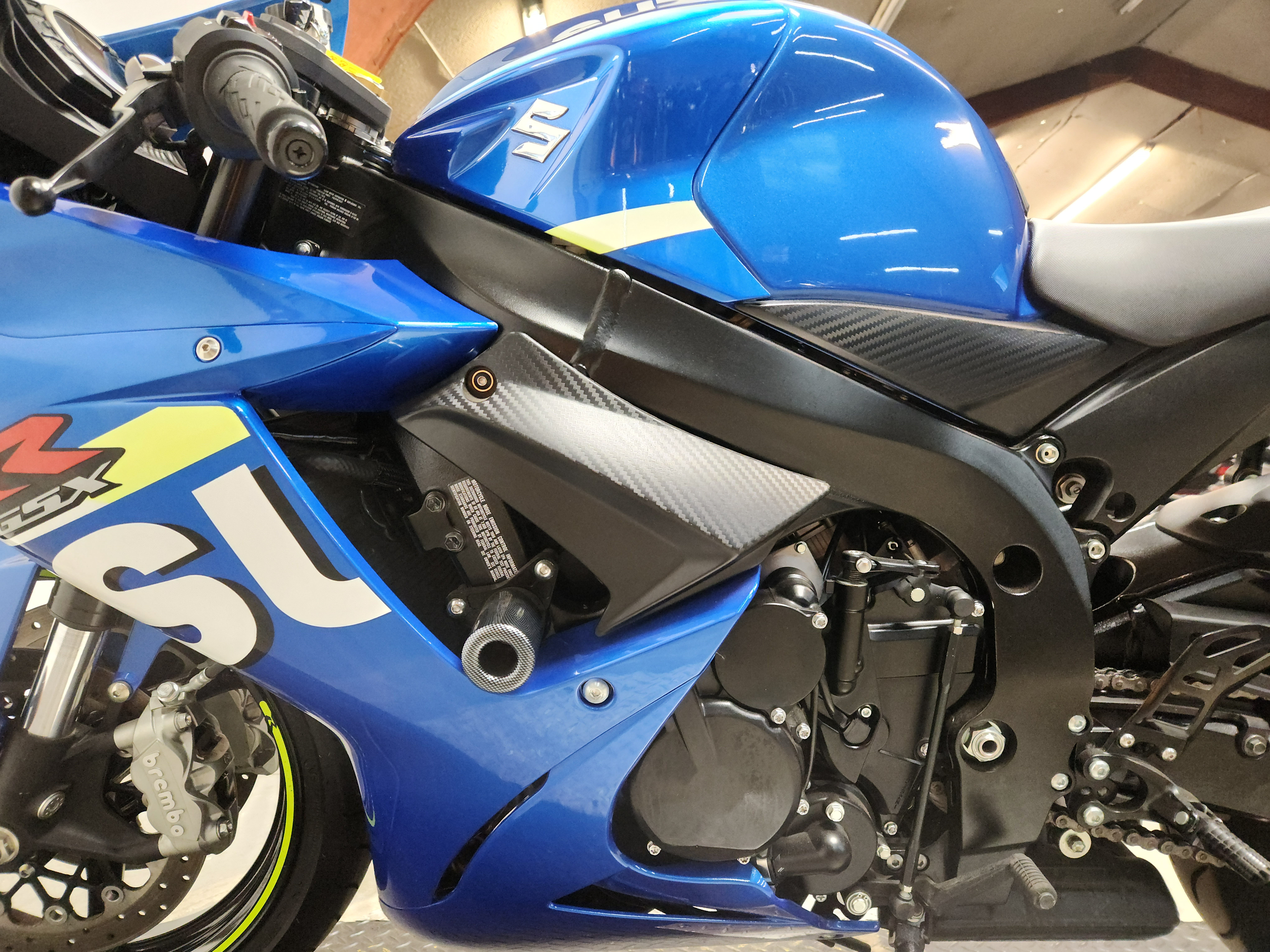 - Twin Brembo Monobloc, radially mounted front brake calipers grasp fully floating stainless steel brake rotors to deliver strong stopping power.