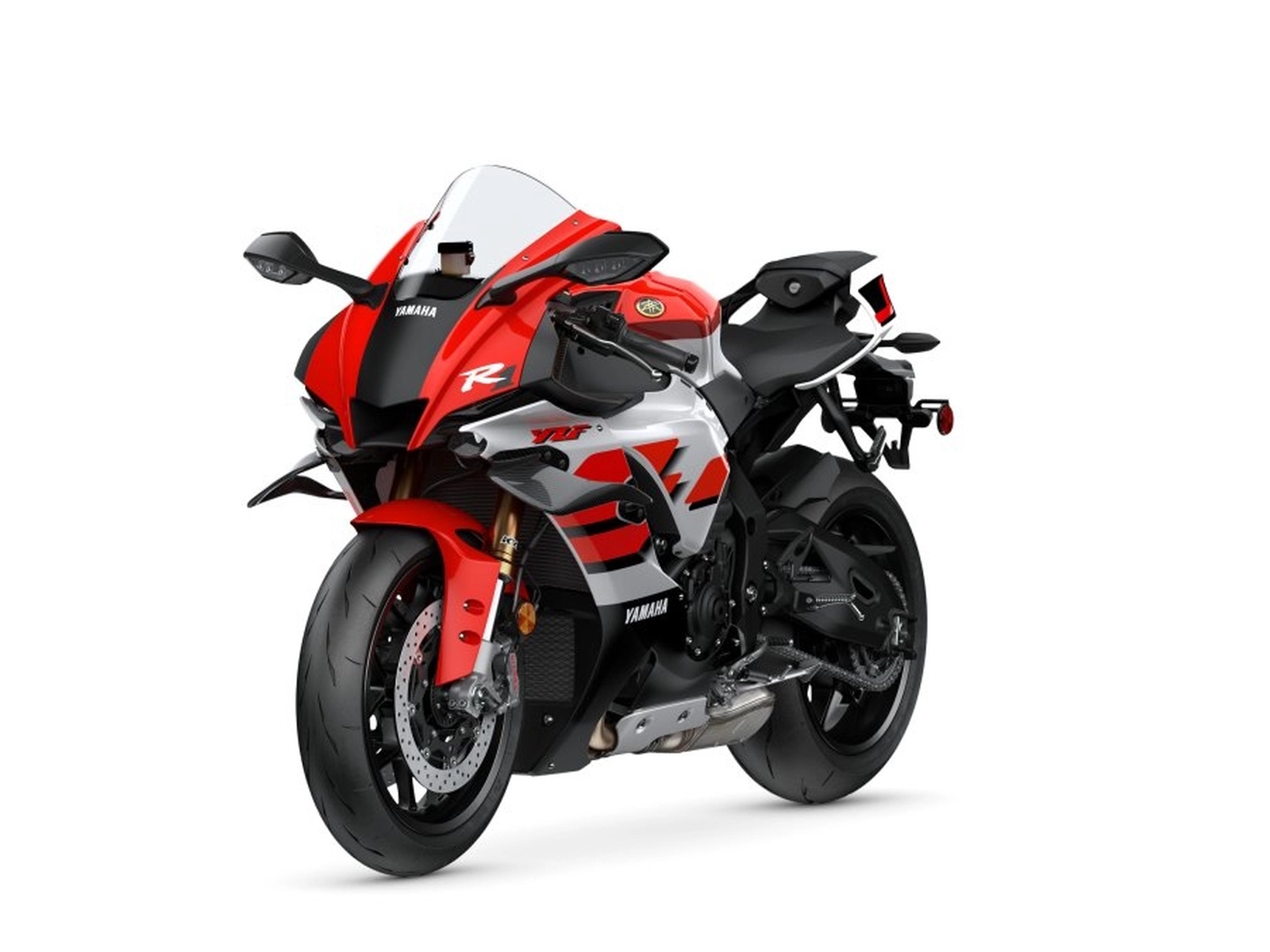 - Celebrate seven decades of motorsports excellence with the 2026 YZF-R1 70th Anniversary Edition. Throwback white and red speed block livery, gold Yamaha Tuning Fork emblems, and Anniversary Edition badge combine with the R1's sleek, modern R-Series design to commemorate the 1955 birth of Yamaha Motor Company in standout style.